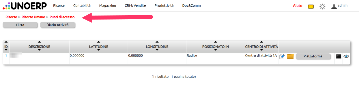 Vai su Risorse > Risorse umane > punti di accesso: