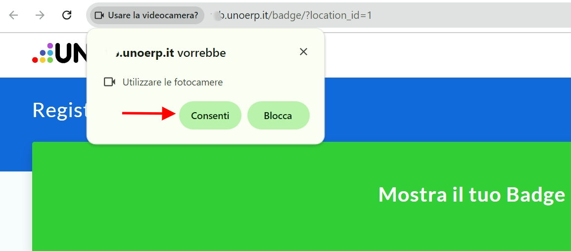 A video ti comparirà questa schermata dove generalmente viene richiesta l'autorizzazione all'utilizzo della fotocamera: