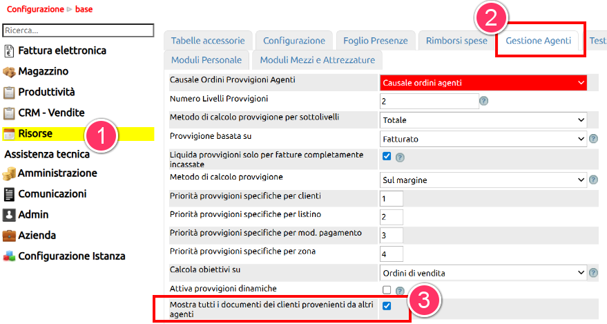 Se si intende modificare questo settaggio, recarsi in Configurazione > Risorse > Gestione Agenti